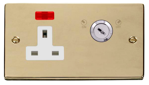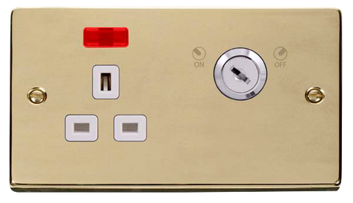 Click Deco VPBR675WH Victorian 13A 1G DP Key Lockable Switched Socket + Neon - Polished Brass (White)