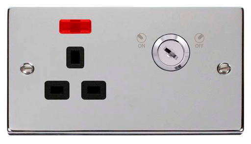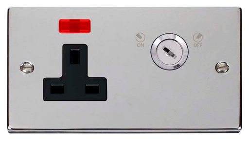 Click Deco VPCH675BK Victorian 13A 1G DP Key Lockable Switched Socket + Neon - Polished Chrome (Black)