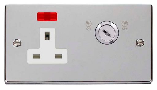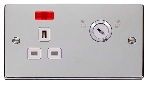 Click Deco VPCH675WH Victorian 13A 1G DP Key Lockable Switched Socket + Neon - Polished Chrome (White)