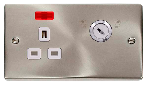 Click Deco Plus DPSC655WH 13A Ingot 1G DP Key Lockable Switched Socket + Neon - Satin Chrome (White)
