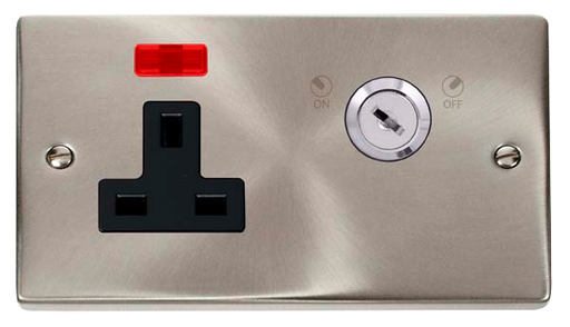 Click Deco VPSC675BK Victorian 13A 1G DP Key Lockable Switched Socket + Neon - Satin Chrome (Black)