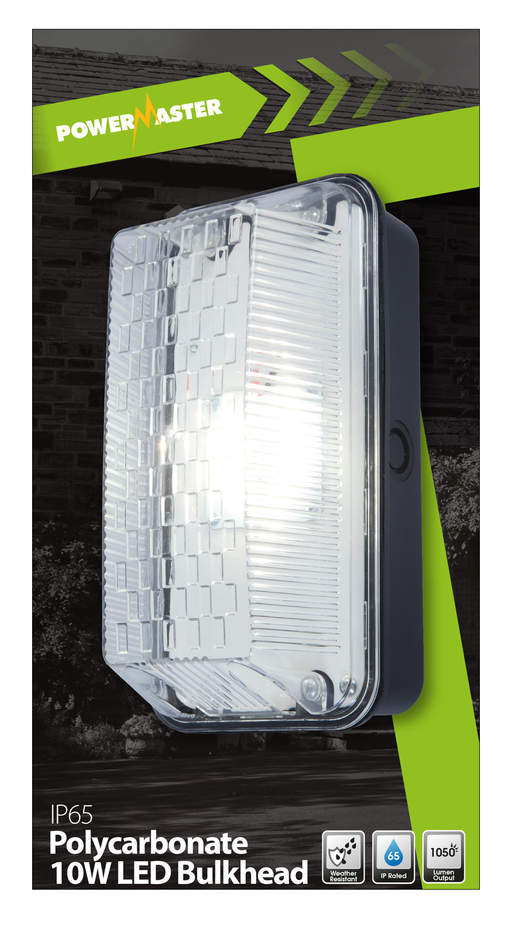 Powermaster S8250 10W IP65 Polycarbonate LED Rectangular Bulkhead 6500K Daylight Features Polycarbonate Diffuser Polypropylene Base Prismatic PC ...