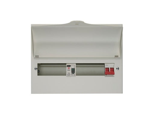 Wylex 12 Way (6+6) Split Load + 100A Main Switch, 80A 30mA Type A RCD Features Full metal enclosure Fixed busbar assembly 6+6W Split load 1x 80...