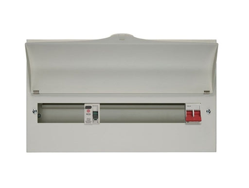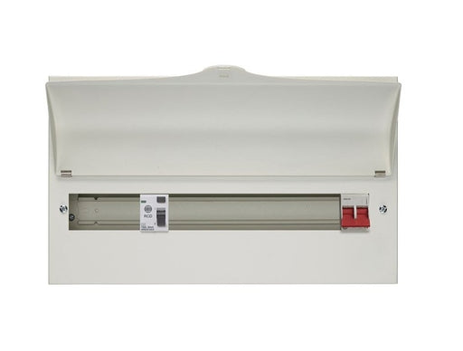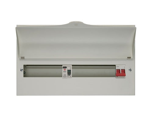 Wylex 17 Way (9+8) Split Load + 100A Main Switch, 80A 30mA Type A RCD Features Full metal enclosure Fixed busbar assembly 9+8W Split load 1x 80...