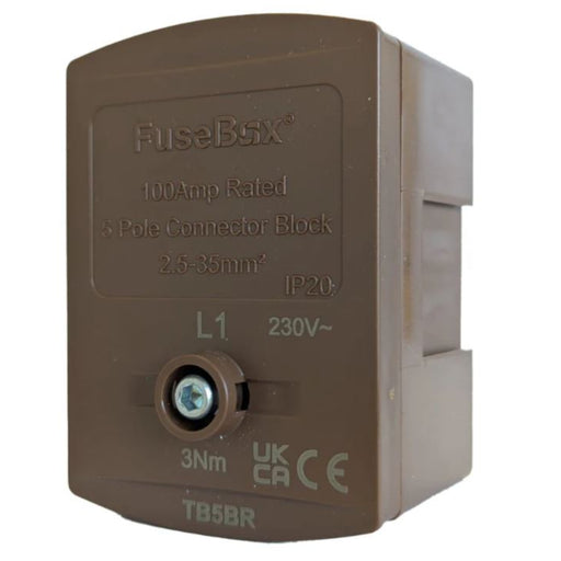 FuseBox TB5BR 100A 5 Pole Terminal Block IP20 Brown FuseBox Brochure: Click Here for FuseBox Brochure