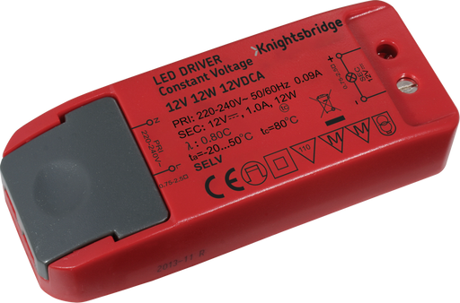 Knightsbridge 12VDCA IP20 12V 12W LED Driver - Constant Voltage 12V 12W Constant voltage driver Data Sheet: Click Here for Data Sheet