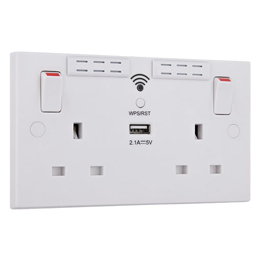 BG 922UWR White Square Edge 13A Double Socket + Wifi Extender +1x USB(2.1A)