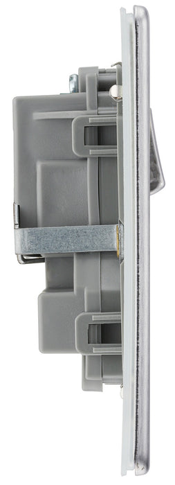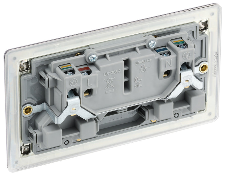 BG FBS22G Flatplate Screwless Double Socket 13A - Grey Insert - Brushed Steel (5 Pack)