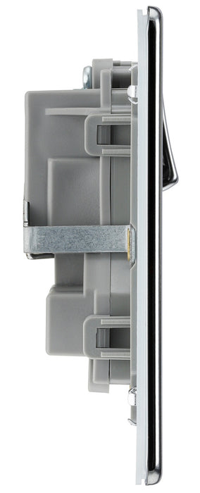 BG Flatplate Screwless Double Socket 13A - Grey Insert - Polished Chrome