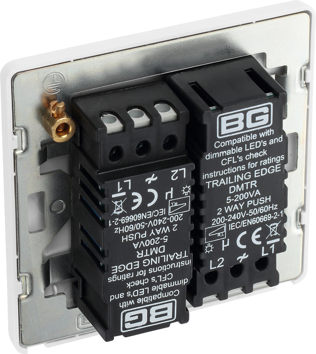 BG Evolve PCDCL82W 2-Way Trailing Edge LED 200W Double Dimmer Switch Push On/Off - Pearlescent White (White)