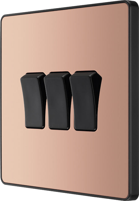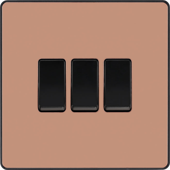 BG Evolve PCDCP43B 20A 16AX 2 Way Triple Light Switch - Polished Copper (Black)