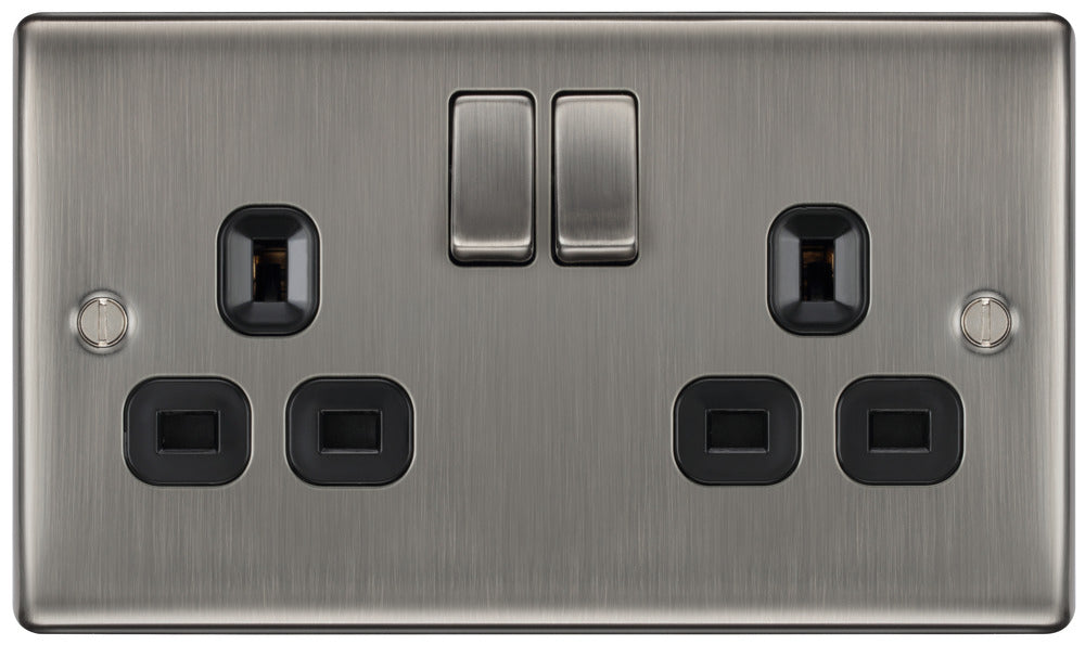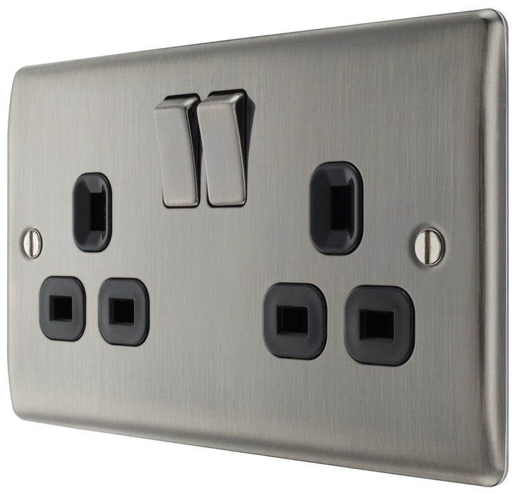 BG NBI22B Nexus Metal Double Socket 13A - Black Insert - Brushed Iridium