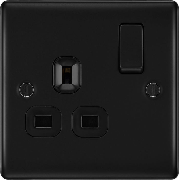 BG NFB21B Nexus Metal Single Socket 13A - Black Insert - Matt Black + Black Rocker (5 Pack)