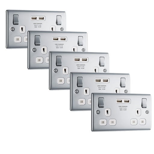 BG NPC22U3Wx5 Nexus Metal Double Socket + 2x USB - White Insert - Polished Chrome (5 Pack)