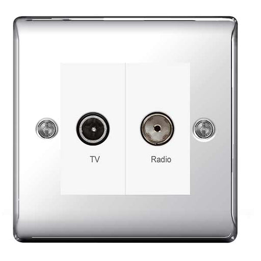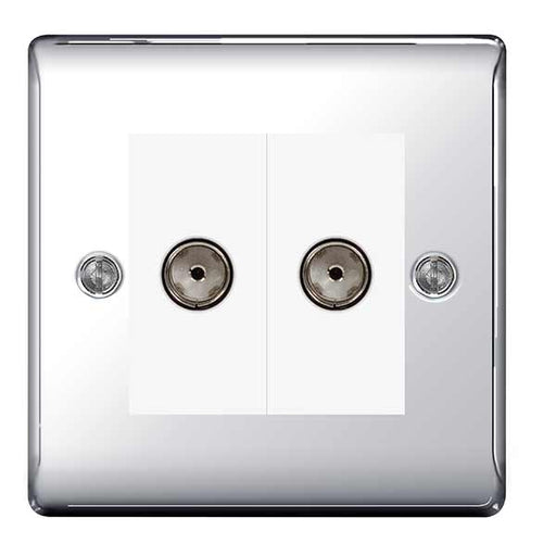 BG NPC61 Nexus Metal Double TV Aerial Socket - White Insert - Polished Chrome