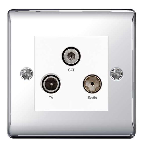 BG NPC67 Nexus Metal Triplex TV/FM/Sat Socket - White Insert - Polished Chrome