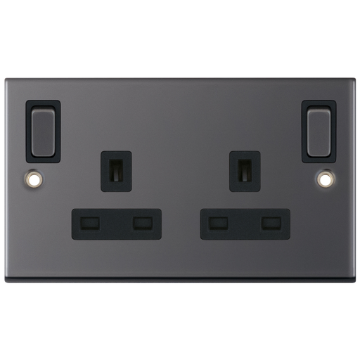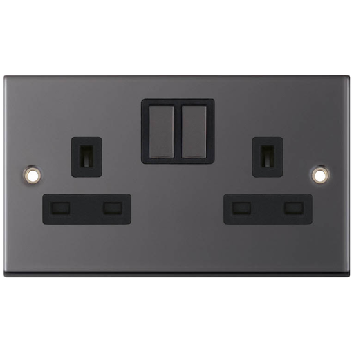 Selectric DSL422 5M 2 Gang 13A Switched DP Socket Outlet with 2 Earth Terminals - Black Nickel, Black Insert