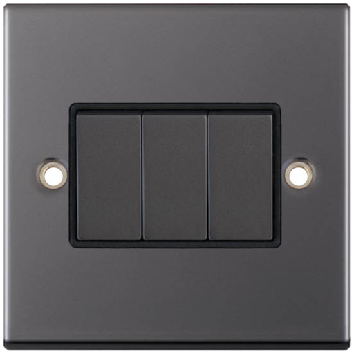 Selectric DSL403 5M 3 Gang 2 Way 10AX Plate Switch - Black Nickel, Black Insert