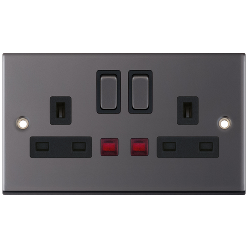 Selectric DSL424 5M 2 Gang 13A Switched DP Socket Outlet with Neon - Black Nickel, Black Insert
