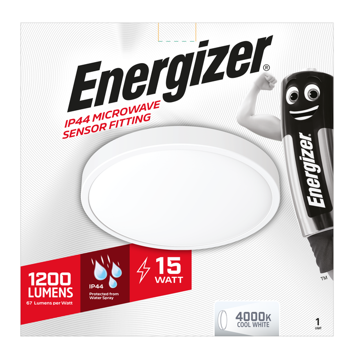 Energizer S13025 15W LED 300mm IP44 Ceiling Light with Microwave Sensor - Cool White 4000K