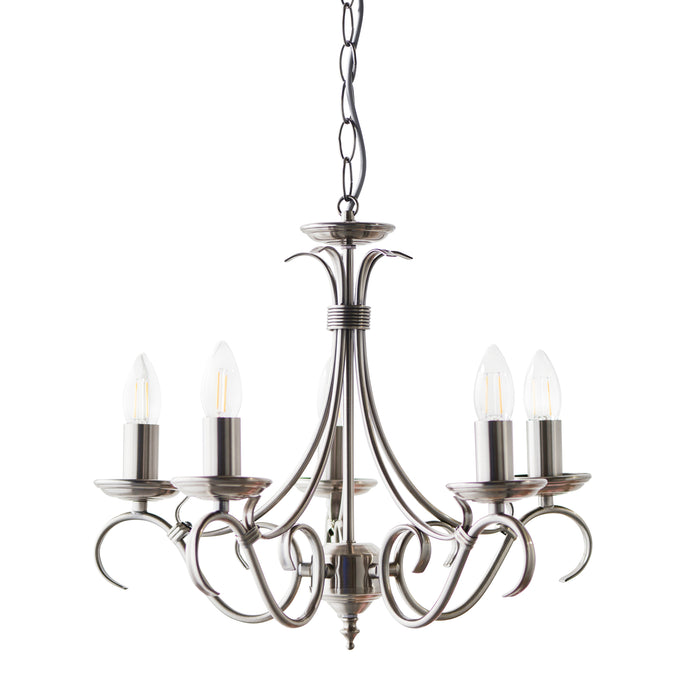 Endon 2030-5AS Bernice 5lt Pendant Antique silver effect plate 5 x 60W E14 candle (Required)
