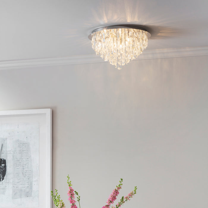 Product DescriptionThe Siena ceiling light is a sophisticated combination of chrome and high quality K5 clear crystal glass details, perfect for low ceilings to create striking light effects.