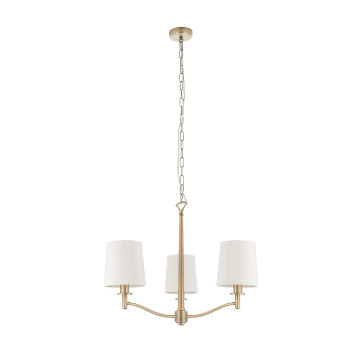 Endon 73411 Ortona 3lt Pendant Matt antique brass plate & vintage white fabric 3 x 40W E14 candle (Required)