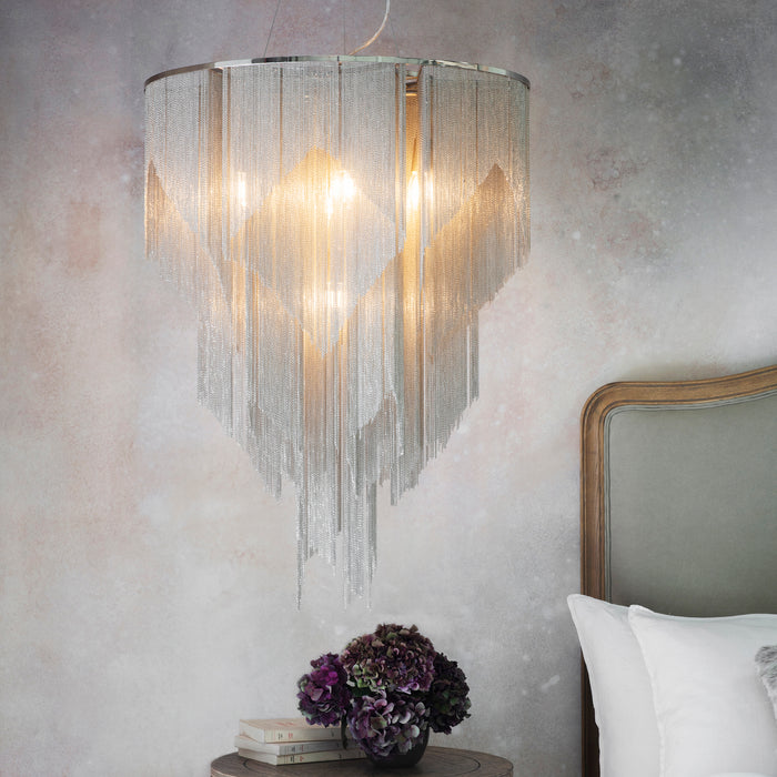 Endon 76512 Loire 7lt Pendant Bright nickel plate & fine chain 7 x 40W E14 candle (Required)