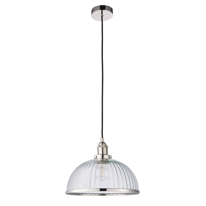 Endon 76713 Hansen 1lt Pendant Bright nickel plate & clear ribbed glass 60W E27 GLS (Required)