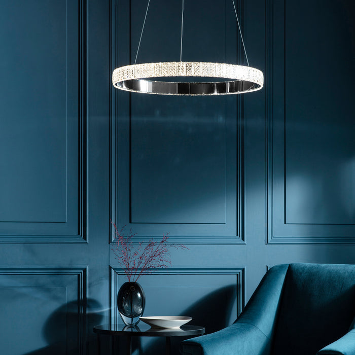 Endon 78702 Celeste 1lt Pendant Chrome plate & clear crystal 28.5W LED (SMD 2835) Cool White