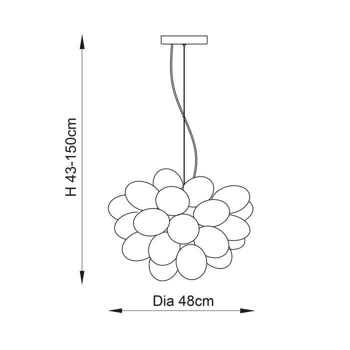 Product DescriptionA stunning addition to modern interiors, the chrome plated Infinity ceiling pendant creates amazing light patterns through multiple iridescent glass shades. Suspended from height adjustable wire cable and clear flex.
