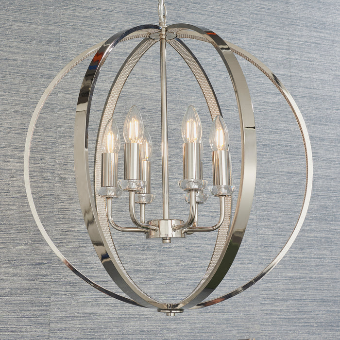 Endon 81508 Ritz 6lt Pendant Bright nickel plate with clear crystal & faceted acrylic 6 x 40W E14 candle (Required)
