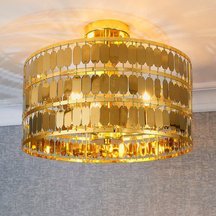 Product DescriptionThe Eldora ceiling light with gold effect hexagonal detailing will give modern interiors a designer look with with shimmer and style.