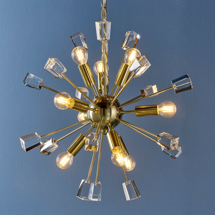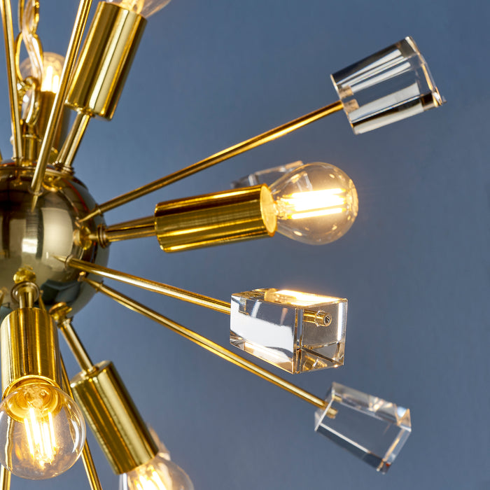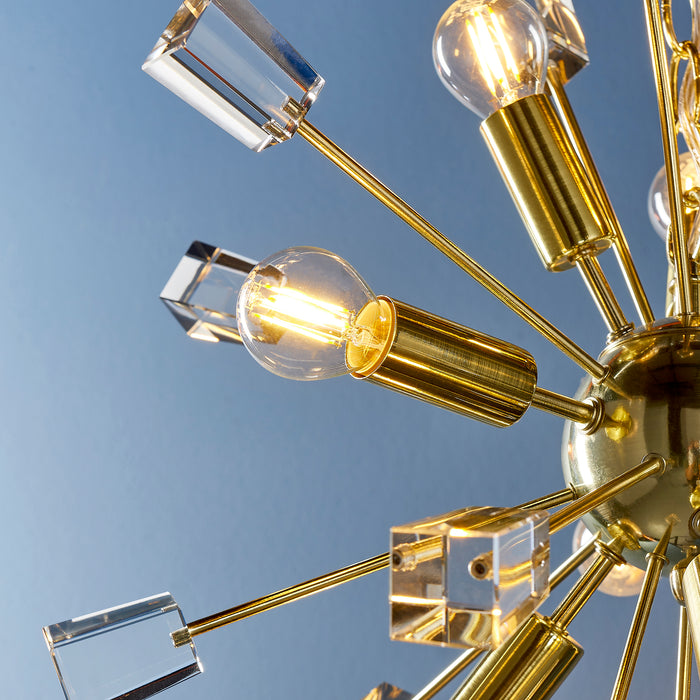 Endon 90293 Miro 9lt Pendant Satin brass plate & clear crystal 9 x 6W LED E14 (Required)