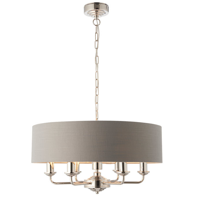 Endon 94373 Highclere 6lt Pendant Bright nickel plate & charcoal fabric 6 x 40W E14 candle (Required)