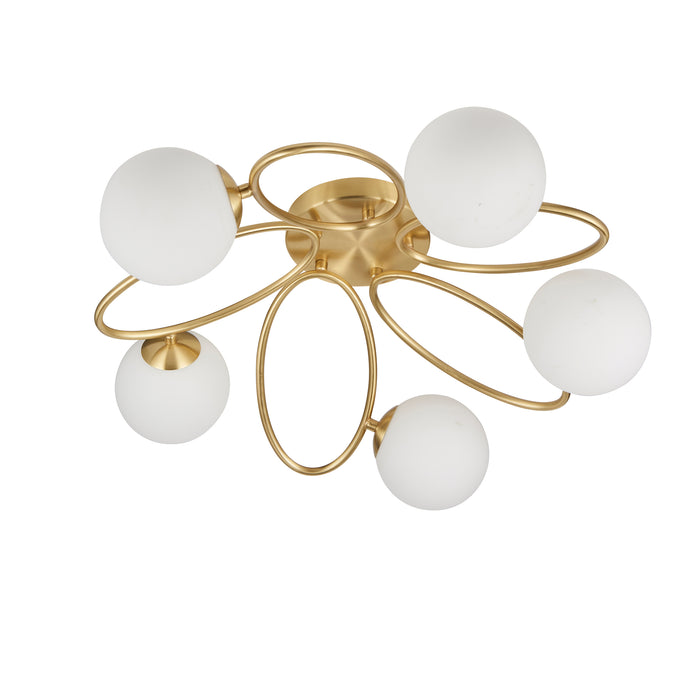 Endon 95291 Ellipse 5lt Semi flush Satin brass plate & matt opal glass 5 x 3W LED G9 (Required)