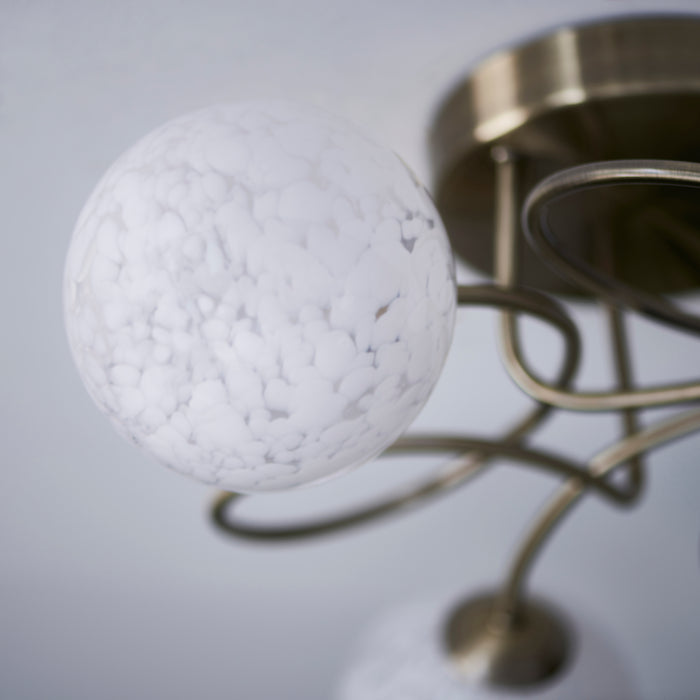 Endon 97647 Delos 3lt Semi flush Antique brass plate & white confetti glass 3 x 3W LED G9 (Required)