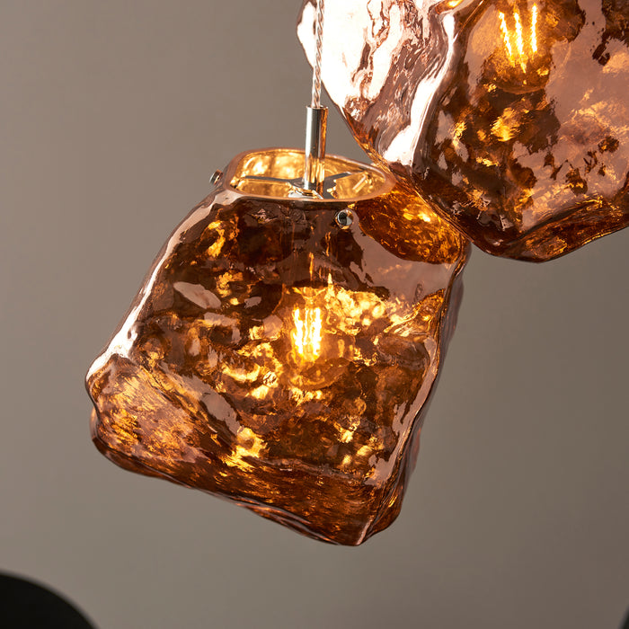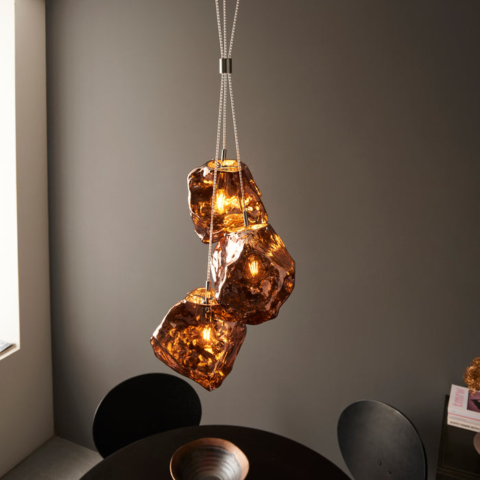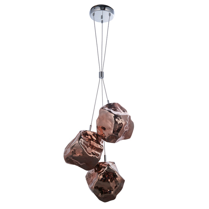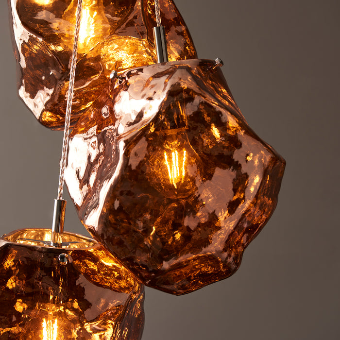 Endon 97659 Rock 3lt Pendant Copper metallic glass & chrome plate 3 x 10W LED E27 (Required)