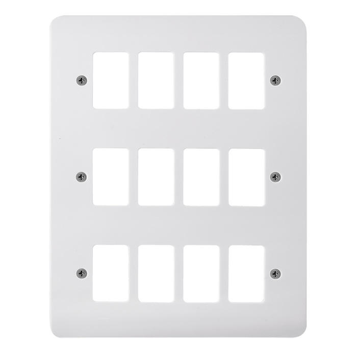 This item is Mode White Moulded 12 Gang GridPro Frontplate