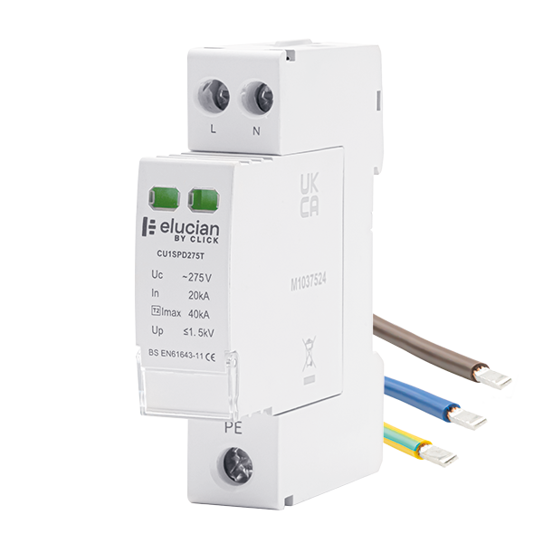 Click Elucian CU1SPD275T 2 Pole 18mm 275Uc 40kA Type 2 SPD with Tails