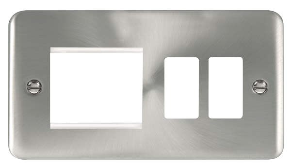 Click Deco Plus DPSC31102 2 Gang GridPro Frontplate with Twin New Media Aperture - Satin Chrome