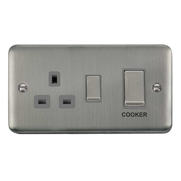 Click Deco Plus DPSS504GY 45A Ingot 2G DP Switch + 13A DP Switched Socket - Stainless Steel (Grey)