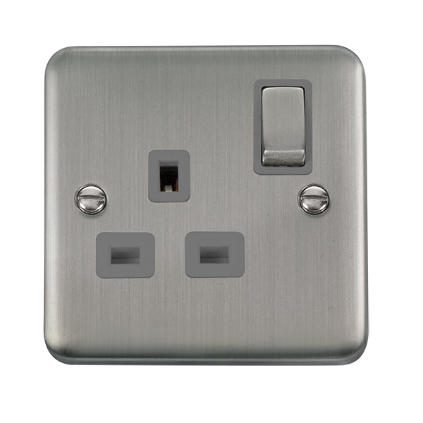 Click Deco Plus DPSS535GY 13A Ingot 1G DP Switched Socket - Stainless Steel (Grey)