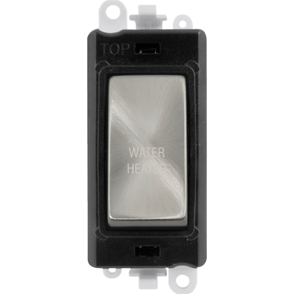 Click GridPro GM2018BKSC-WH 20AX Double Pole Switch Module printed "Water Heater" - Satin Chrome (Black)