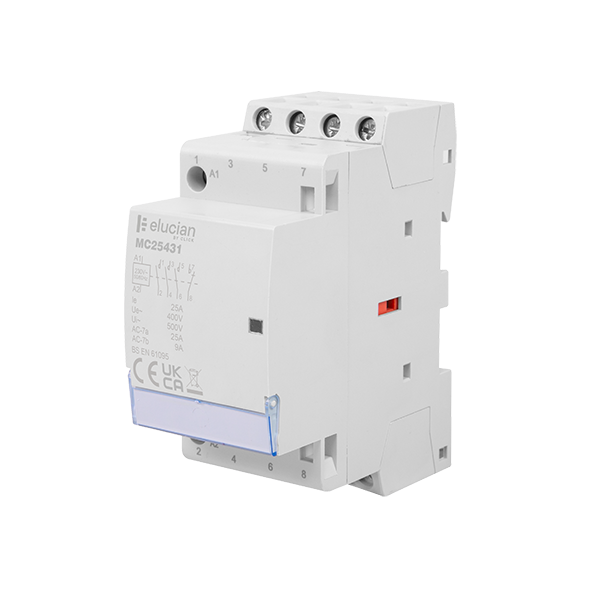 Click Elucian MC25431 25A 4 Pole 2 Module Contactor 3x Normally Open 1x Normally Closed