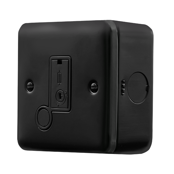 A robust new range of durable, stylish wiring accessories built to withstand the demands of everyday use. Designed with a sleek, curved profile with matching back box profile, Metal Clad Pro combines modern aesthetic with our latest innovations for secure, long-lasting performance in any environment.This item is Metal Clad Pro 3A Fused Connection with Flex Outlet with Optional Flex Outlet - Black
