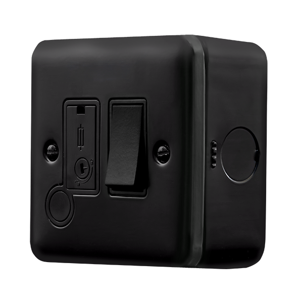 A robust new range of durable, stylish wiring accessories built to withstand the demands of everyday use. Designed with a sleek, curved profile with matching back box profile, Metal Clad Pro combines modern aesthetic with our latest innovations for secure, long-lasting performance in any environment.This item is Metal Clad Pro 13A Switched Fused Connection with Flex Outlet with Optional Flex Outlet - Black