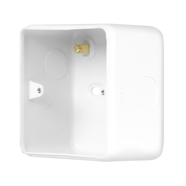 A robust new range of durable, stylish wiring accessories built to withstand the demands of everyday use. Designed with a sleek, curved profile with matching back box profile, Metal Clad Pro combines modern aesthetic with our latest innovations for secure, long-lasting performance in any environment.This item is Metal Clad Pro 1 Gang 50mm Deep Surface Mounting Box - Polar White