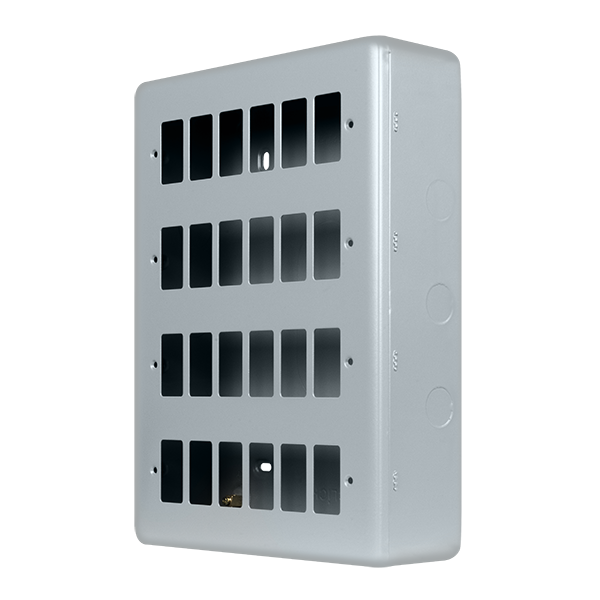 A robust new range of durable, stylish wiring accessories built to withstand the demands of everyday use. Designed with a sleek, curved profile with matching back box profile, Metal Clad Pro combines modern aesthetic with our latest innovations for secure, long-lasting performance in any environment.This item is Metal Clad Pro 24 Gang GridPro Front Plate