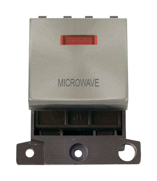 Click MiniGrid MD023BS-MW 20A DP Ingot Switch + Neon "Microwave" - Brushed Stainless